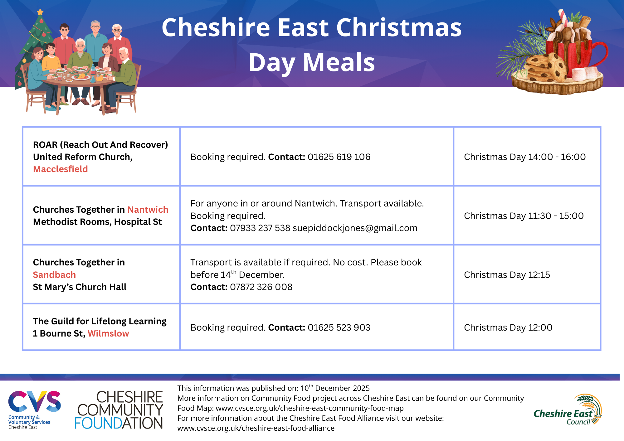 Cheshire East Community Food Projects: Christmas and New Year 2025 Opening Times