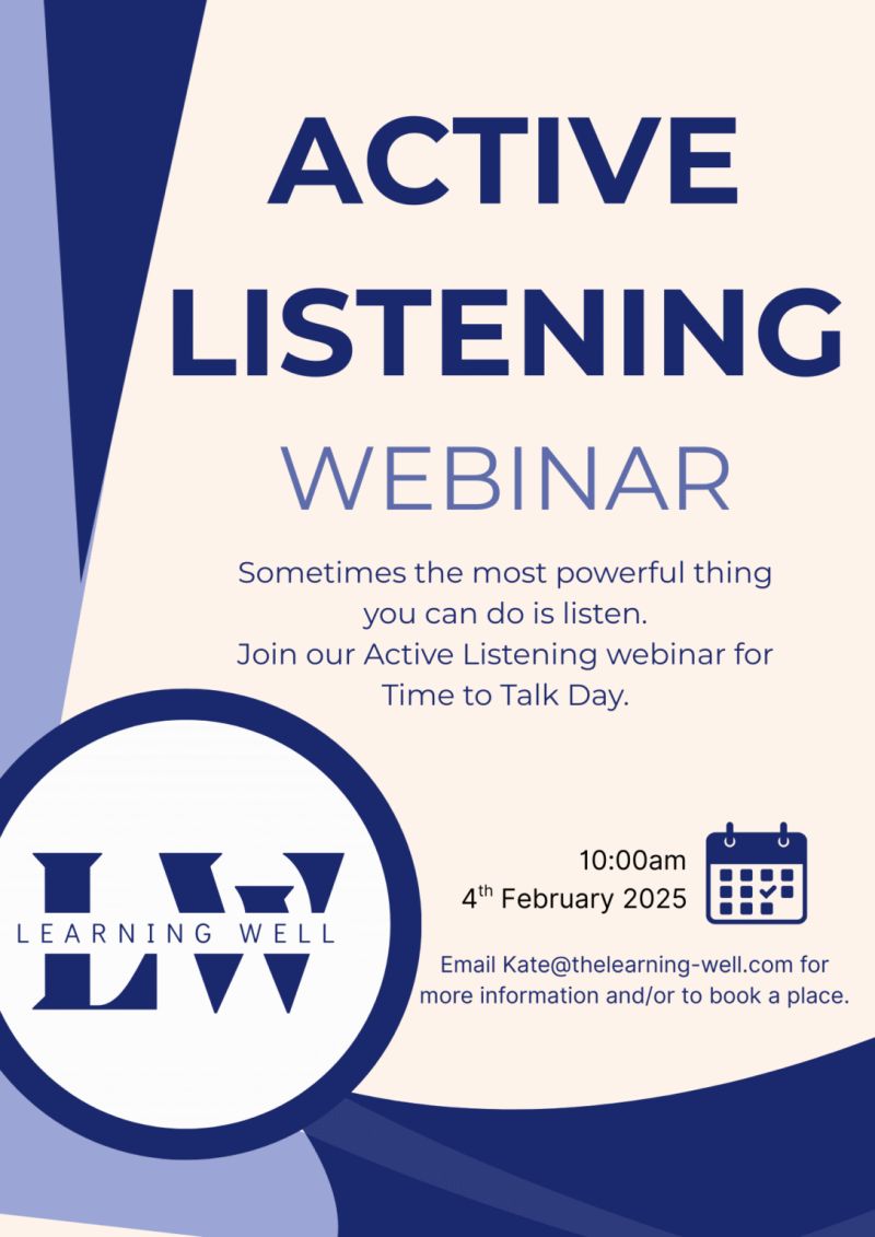 - Free Active Listening Workshop on Wednesday 4th February, 10am-11am. https://us02web.zoom.us/webinar/register/WN_tdzCSA1BTuy6vowbc_48ZQ